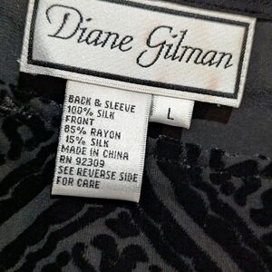 NWT Diane Gilman Black Silk Rayon Velvet Sheer Tunic Blouse Large