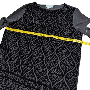 Diane Gilman Black Silk Rayon Velvet Sheer Tunic Blouse