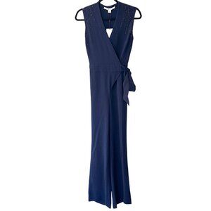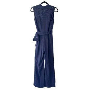 NWT Diane Von Furstenberg 0 ‘Margot’ Beaded Sleeveless Wide Leg Wrap Jumpsuit