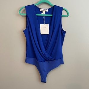 NWT Diane Von Furstenberg DVF Lala Plunge Blue Bodysuit Size Medium