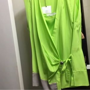 NWT Diane Von Furstenberg DVF Neon Silk Wrap Top