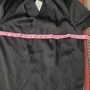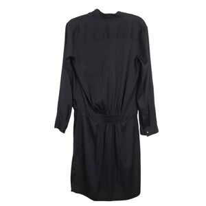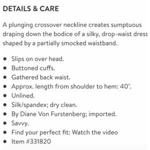 Diane Von Furstenberg Issie Silk Draping Dress, lightweight silky Satin feel, relaxed fit, long sleeve, sexy slit on front, cross over draped front with hook and loop closure, pullover, smocked elastic back, unlined.