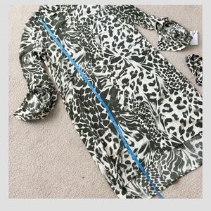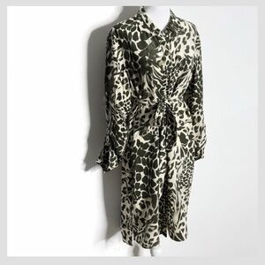 NWT Diane Von Furstenberg Dress Prita Feather Leopard Belted Long Sleeve 100% Silk Size 10