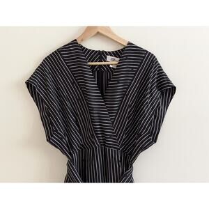 Diane Von Furstenberg Sz 2 Short Sleeve V-Neck Jumpsuit Romper Larson Black & White, Belted with pockets and pleats, new with tags. 100% Silk. Please contact me if you'd like measurements.