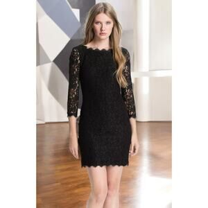 NWT - Diane Von Furstenberg Zarita Black Stretch Lace Shift Dress Size 10