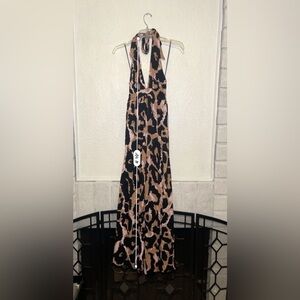NWT Diane Von Furstenberg pink, black and brown animal style long romper size XXS