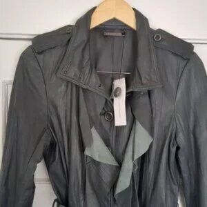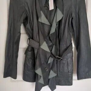 NWT Diane Von Furstenburg Millitette Leather Jacket Button Belted Size 12