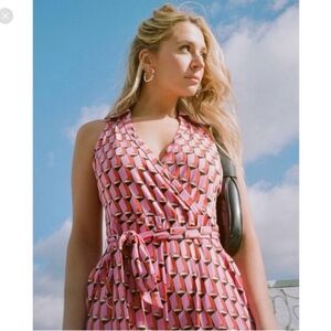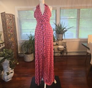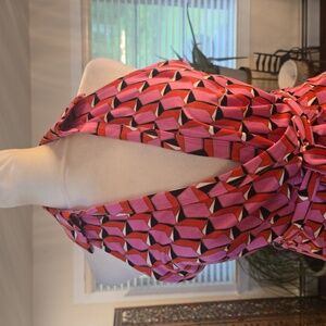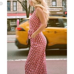 NWT Diane Von Furstenburg x Target V Neck Faux Wrap Geo Print Jumpsuit Pink XS