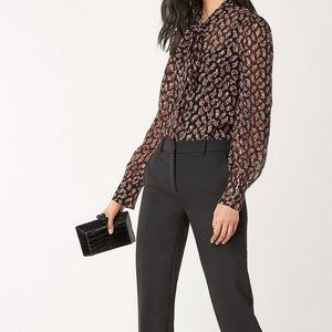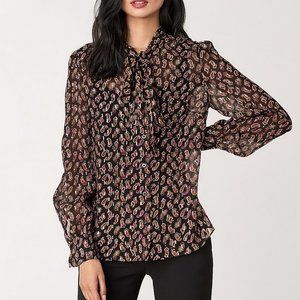 The season's style report forecasts a tie-front blouse trend, and this paisley-printed, silk chiffon option is a delightful way to wear it.