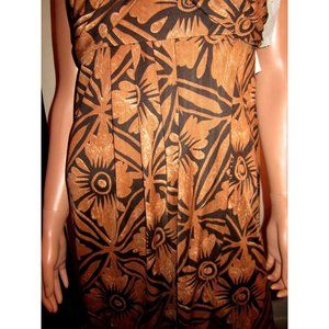 New with tags from Neiman Marcus--Diane von Furstenberg Lali Dress. Island floral print. 70% Silk/ 30% Nylon Color: Sumatra Butter Rum brown and caramel. Sleeveless with straps that tie in back. Draped and ruched bodice. Faux wrap skirt that suggests a sarong. Pullover style. Size 10. Brand new with tags. Originally $325. From a smoke-free home.