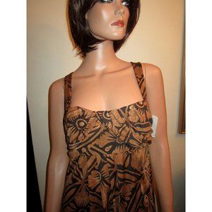 NWT Diane von Furstenberg M 10 Dress Sundress Sun Brown Print Silk Lali DVF