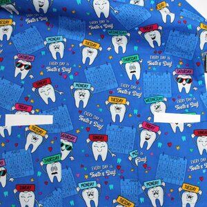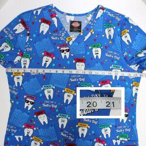 NWT Dickies Dental Theme Short Sleeve V Neck Graphic Scrub Top With Pockets