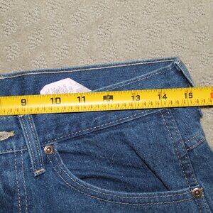 Upgrade your wardrobe with these NWT Dickies Jeans in blue. These 5-pocket work jeans feature a relaxed fit and mid-rise waist, making them perfect for any occasion. The jeans are made of 100% cotton denim with a dark wash, making them durable and machine washable. The jeans come with a zip and button closure, as well as a logo accent. They are available in size 30x32 and have a regular fit. These jeans are ideal for those who want to achieve a grunge or cowboy look. They are also suitable for school, work, or hip hop themes. Order now and add these versatile jeans to your collection.