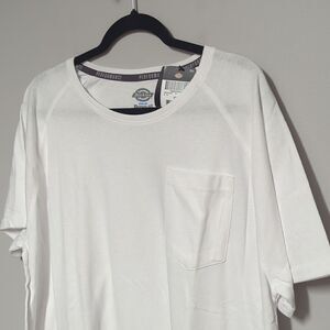 White, short sleeve pocket t shirt. Cooling technology, moisture wicking