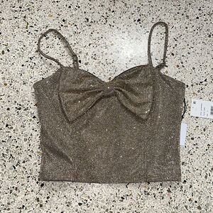 NWT Dillards Originality taupe shimmer gold bow camisole tank small s