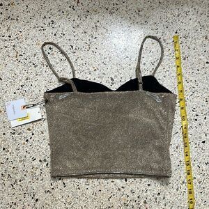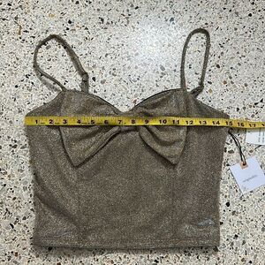 NWT Originality Dillards gold shimmer taupe adjustable strap tank camisole bow front small s glitter cocktail