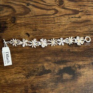 This brand new bracelet from Dillards features a charming floral design with vibrant green flowers and a cute ladybug accent. Made specifically for sensitive skin, it combines elegance and comfort, ideal for daily wear or special occasions. Crafted with attention to detail and quality, this bracelet adds a touch of whimsy to any outfit.