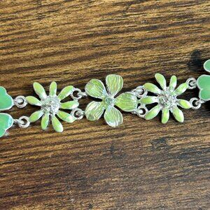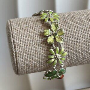 NWT Dillards Silver Green Flower Ladybug Bracelet 7" Sensitive Skin Rhinestones