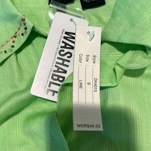 New with tags, smoke-free. Size small, no stretch. Measurements provided in the photos. More of a fitted style. Button down front. Beaded detail on the Collar