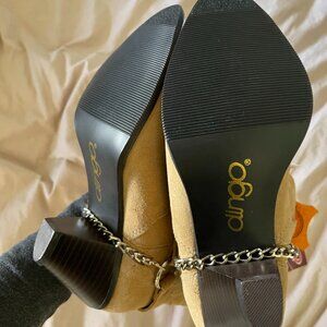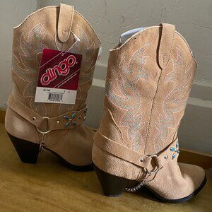 (NWT) Dingo Beige Western Cowboy Boots | Leather Upper with Chain Detail