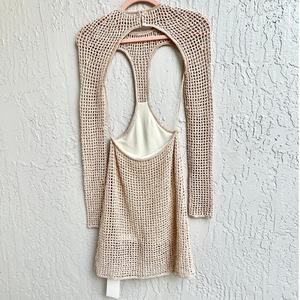 NWT Dion Lee Knit Pinnacle Stirrup Crochet Mini Dress Beige Marble Women XS