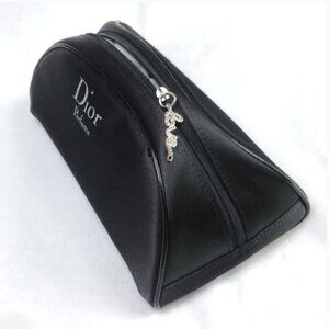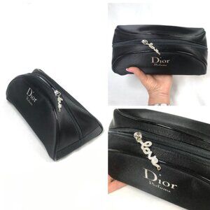 NWOT Dior Half Moon Crystal embellished Silk Cosmetic bag. New Large Dior Parfums Half Moon Crystal pull embellished bag. Silver zipper pull. 10”l x 5”h x 5”w. No rips, stains, or marks.