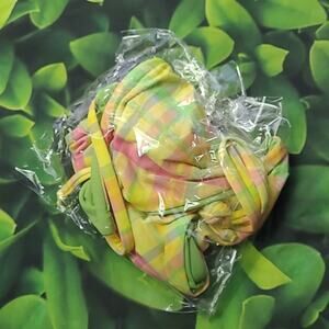 Pretty plaid combo in yellow, green & pink reverses to solid green