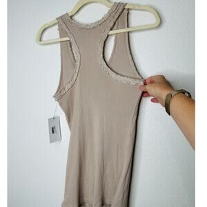 NWT Dis Moi Tan Rib Knit Racer Back Lace Edging Tank Top