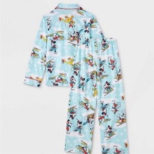 Disney 100 retro imagined family matching sleep set. 2 piece pajamas / loungewear. 100% polyester flannel feel. New with tags. Has Mickey & Minnie and Disney characters playing in the snow. I love to bundle!