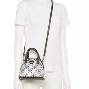 Dimensions: 6"H x 7.5"W x 3.25"D, Handle: 2.5'' drop, 30-36" strap length, Adjustable crossbody strap, Zipper closure, Silver-tone hardware