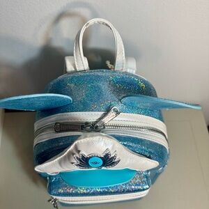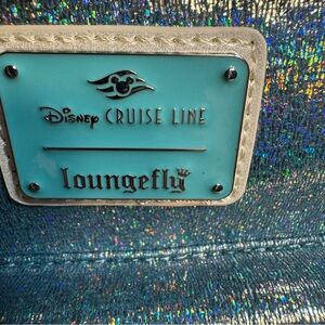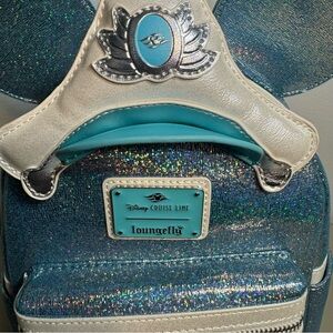 NWT. Disney Cruise Line Loungefly Mini Backpack - 25th Anniversary. Shimmering Seas bag. NOTE: has minor mark on top handle as shown in last photo. Disney Cruise Line mini backpack from Loungefly. simulated leather with shimmering with iridescent sheen. Featuring DCL insignia and 'Captain's hat'.