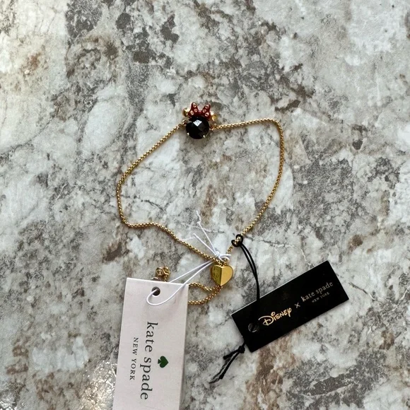 NWT Disney Kate Spade Minnie Mouse Gold Slider Adjustable Bracelet