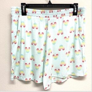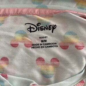 NWT Disney Women's Size M Pajama Set 2 Piece Mickey Top Short Pants Stretch Pocket Rainbow Multicolor