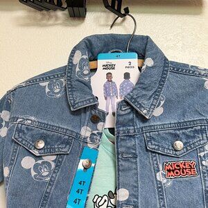 NWT Disney Mickey Mouse 2 Piece Denim Jacket and T Shirt Kids Size 4T