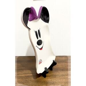 This adorable Minnie Mouse ghost tray is a delightful addition to any Halloween decor. Featuring Minnie as a friendly ghost, complete with her iconic bow in a vibrant purple hue. Hand-painted details bring this ceramic piece to life, making it a unique collector's item or a charming serving piece for treats and candies. . Perfect for Disney enthusiasts or anyone looking to add a touch of playful spookiness to their fall season & Halloween celebrations.