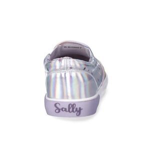 Comfort features: Closed toe; colorful screen print of Jack and Sally on upper; logo on footbed