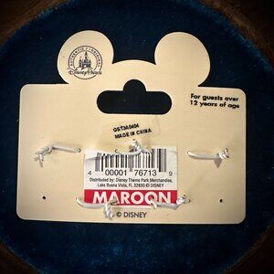 A whimsically spooky five-pair earring set celebrating Halloween at the Disney Parks, featuring glittered Mickey icons, a friendly ghost, a classic black cat silhouette, a candy-corn–inspired stud, and a bright pumpkin bead. A charming seasonal assortment that brings playful Disney magic—and a touch of mischievous fun—to any outfit.