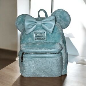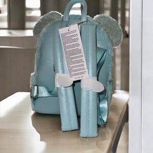 Despite its coloring, you'll feel anything but blue whenever you're carrying this mini backpack from Loungefly. Sporting Minnie's signature bow and 3D ears, this cute and cuddly bag features a tinsel faux fur covering combined with coordinating simulated leather detailing to add a little sparkle to your day.