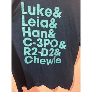 NWT Disney Parks Star Wars Luke Leia Han C-3P0 R2-D2 Chewie Blue Turquoise Tee L