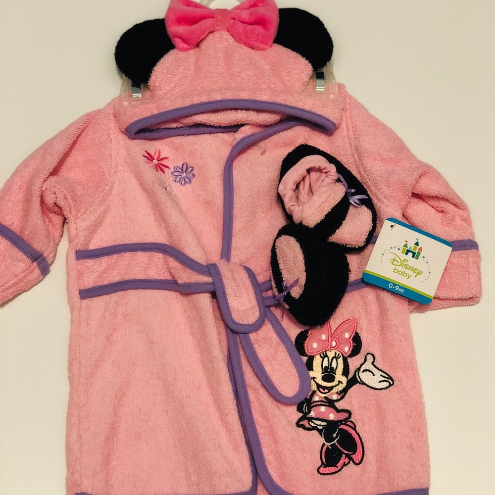 NWT Disney Robe Set. Includes hooded Robe and slippers. 0-9 months