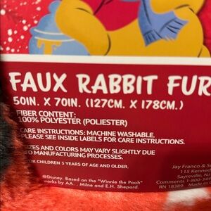NWT Disney SANTA Winnie the Pooh FESTIVE RED FAUX RABBIT FUR CHRISTMAS THROW