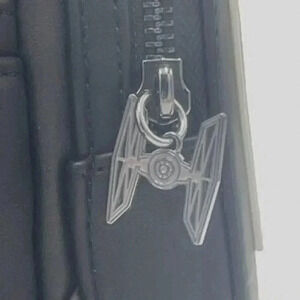 This NWT Disney Star Wars Loungefly Mini Backpack, a limited edition Summer 2023 Convention collectible, features the iconic Tie Fighter style. Compact yet capacious, it's perfect for Star Wars fans on the go.