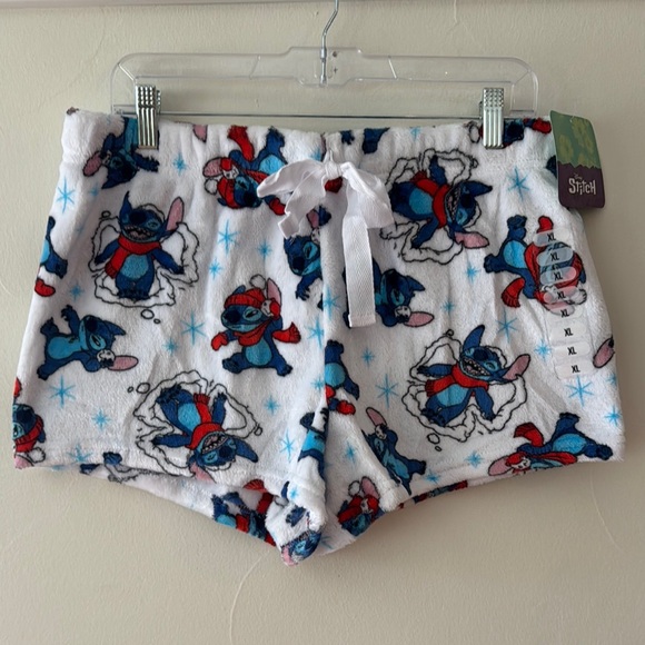 NWT Disney Stitch White and Blue Fleece Pajama Sleep Shorts Winter Themed