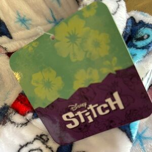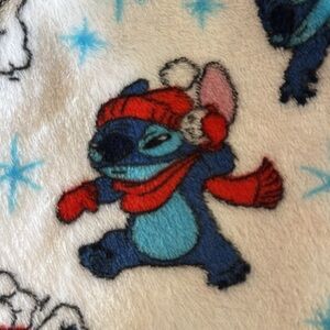 Soft fleece shorts with playful Stitch design. Features a white base with blue and red accents. Waist laid flat 16 and 1/2 inches. Stretched fully is 21 inches. New with Disney tags.