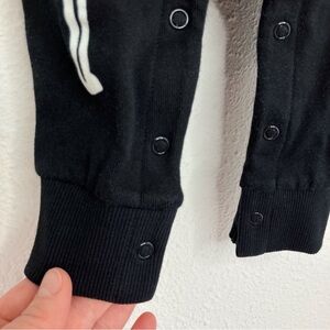 Hooded one piece costume, zip front, black onesie with a skeleton print. Glow in the dark. Perfect for keeping baby warm. Gender neutral, good for baby boys or girls. Baby’s first Halloween costume.