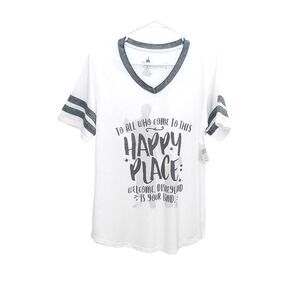 NWT Disney Store Park Ringer Style "Happy Place" Mickey Mouse Graphic Tee Shirt