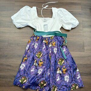 Up for sale is a Disney Dress Shop dress inspired by the Hunchback of Notre Dame and Esmeralda. It's brand new with tags in size 3X. I did notice one loose string on the back portion of the dress (see close-up). Otherwise, it is in new condition and ready to be enjoyed!