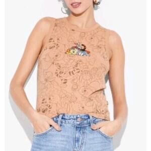 NWT Disney Winnie Pooh Embroider Tank Top Macroon Tan & Bracelet Minnie 14k Gold