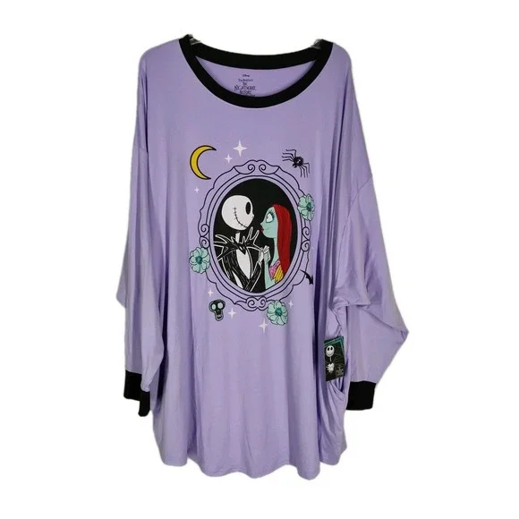 Brand new with tags. Disney Tim Burton's Nightmare Before Christmas Jack Skellington & Sally Sleep Shirt. This is a long sleeved sleep shirt with a pocket on each side. This one is size XL.