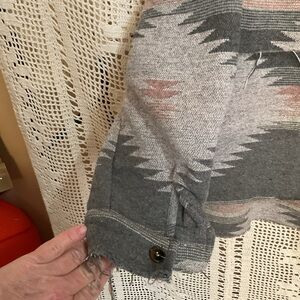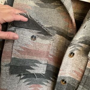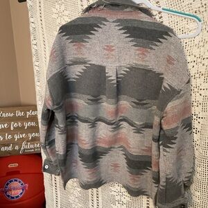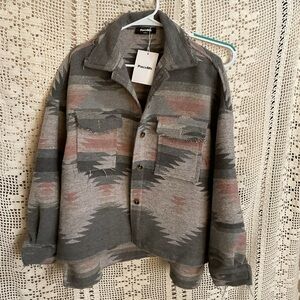 NWT Distressed Aztec Button Down Shacket Jacket Large